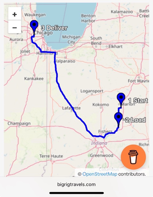 Big Rig Travels day began at 10:25 am EDT. It was 56 degrees and overcast at the Marathon truck stop near Gas City, IN. We are starting our dead head trip to the shipper near Anderson, IN on I-69 south.