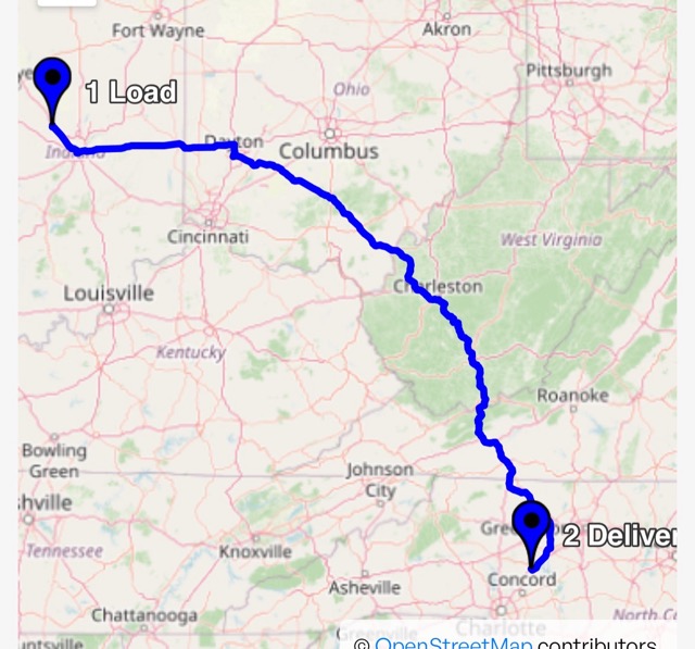 Big Rig Travels day began at 12:11 pm EDT. It is 48 degrees and partly cloudy at the Flying J near Lebanon, IN. We are starting our trip to Salisbury, NC. “Loaded and good to go. Scaled out, all good.” “Today and tomorrow to get there. Nice, easy ride.” We had started out earlier today with a live load, we had 60:27 hrs on the 70 hour clock.
