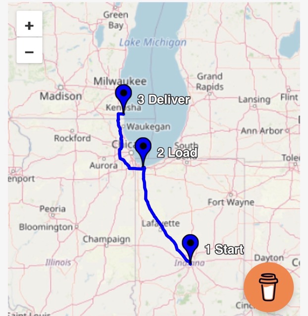 “We’re only one hour behind.” We are starting our trip to Kenosha, WI for a 3:00 am delivery. We are taking the Chicago Skyway, then through downtown Chicago.