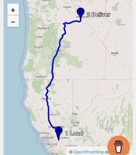 Stop at Love’s near Boardman, OR at 12:08 pm. Needs to charge the leaf blower battery. No coffee cups at this Love’s, so needed to come back to the truck to get a cup so he could get coffee. 34 miles to go. Stream ends at 1:02 pm as he nears the customer.