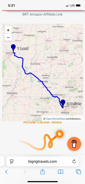 Big Rig Travels day began at 11:25 am. It is 74 degrees and partly cloudy, leaving the shipper near Edwardsville, IL. We are starting our trip to Kennesaw, GA.
